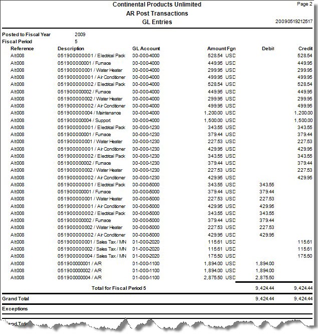 If Accounts Receivable interfaces with General Ledger, debit and credit entries are created in the GL Journal. If detail information is posted, entries are made for each line item. If summary information is posted, one entry is made for each account. If the accounting period is closed, you can either edit transactions or use the System Manager Period Conversion function to open the accounting period and then post the transactions.