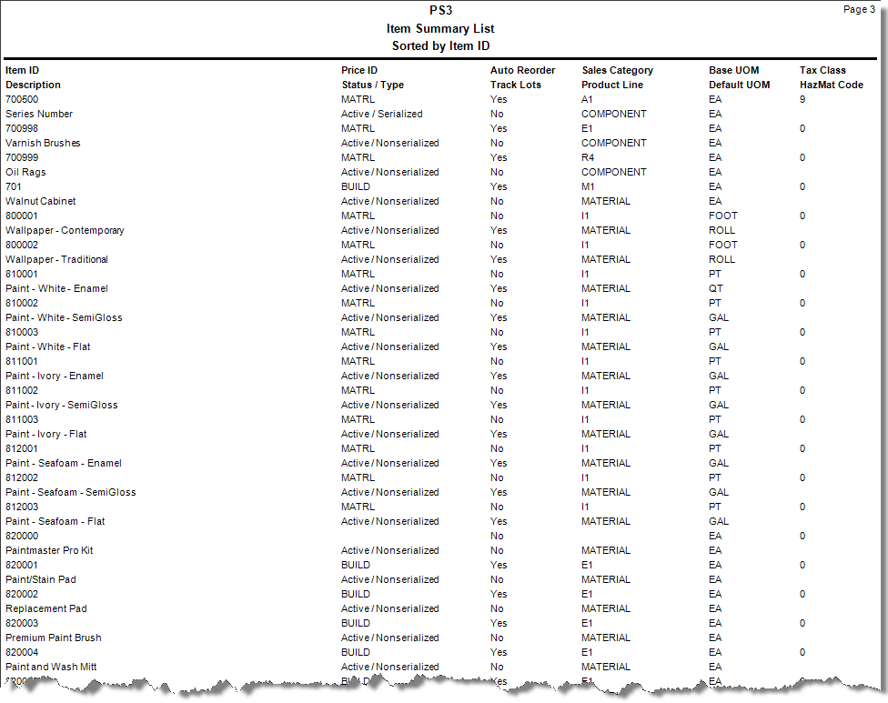 | Preview | Preview the Item Summary List using the selected criteria. |