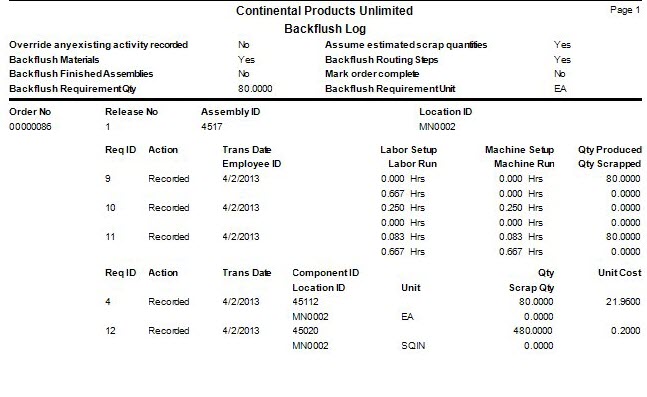 After you do the backflush, if the actual quantities do not match the planned quantities, you can edit the generated activity and change quantities, etc. By making those adjustments when necessary, you will reduce any inventory or cost variances that you may encounter.