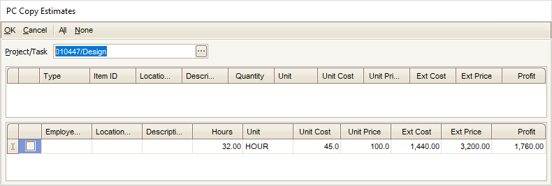 - Click the OK button to copy the selected lines, or click the Cancel button to abort the process and return to the Estimates screen.