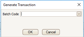 - Use the Generate Transaction button to load the Generate Transaction dialog window and select a batch to use to generate the transactions. You can only use this button if you select a material type estimate.