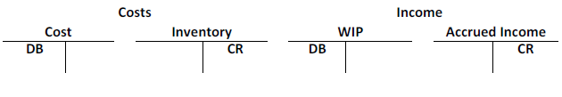 The General Ledger accounting for Transactions/Time Ticket entries in a Job Costing environment is as follows: