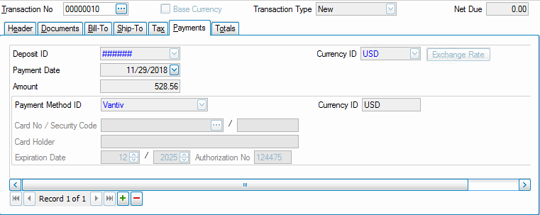 - Once the payment has been processed, the receipt will print and you will return to the SO transaction screen.