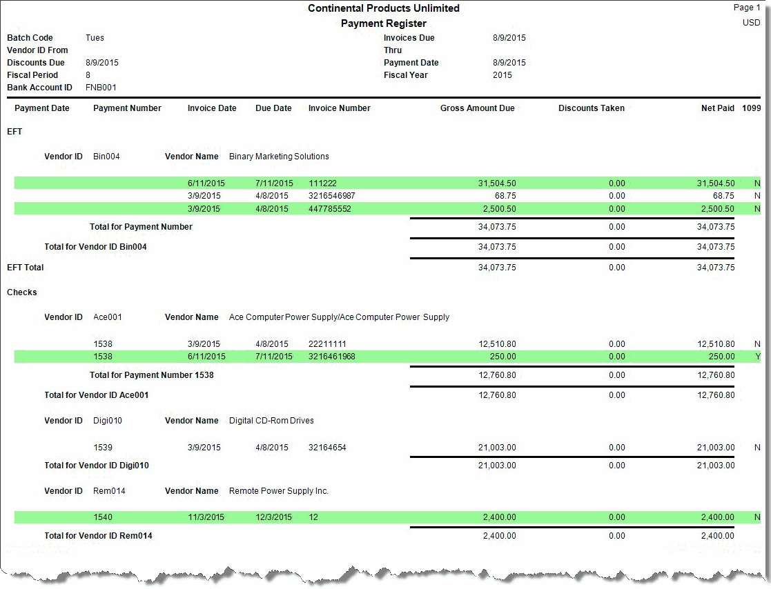 Use the Payment Register as an audit trail of the checks your company issues to vendors.