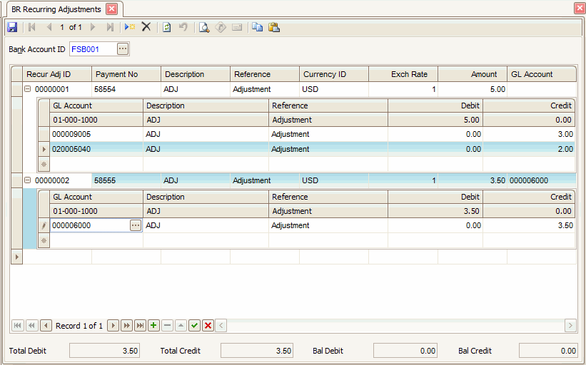 - Click the Save button, on the toolbar, to save any changes made to the recurring adjustment.
