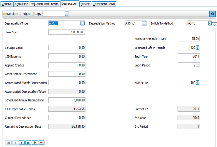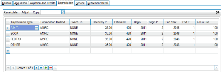 Use the Depreciation tab to record the information on which the asset depreciation calculations are based and the results of the calculations.