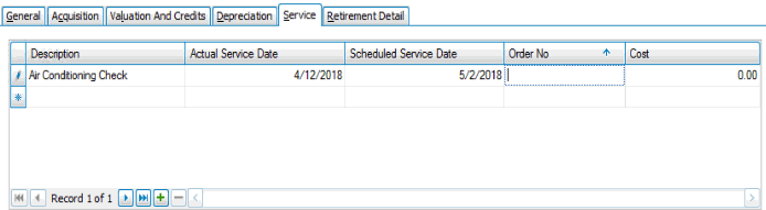 Use the Service tab to track service/maintenance information about the asset.