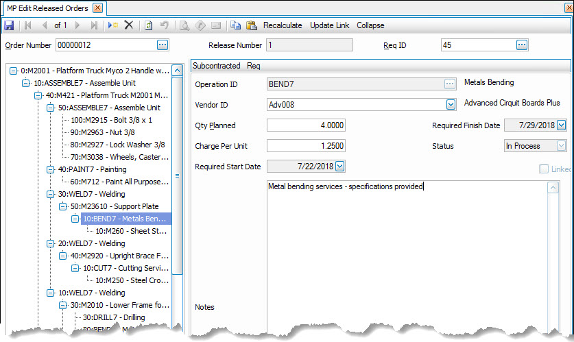 Editing Released Orders - Subcontracted