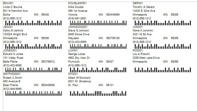 A POSTNET barcode, which is an extension of the 9-digit zip code used by the United States Postal Service, is printed on your labels if you chose that option using the Country Codes function of the System Manager.