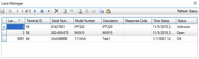 - Click the Refresh Status button on the Lane Manager screen to refresh the status of the EMV cloud credit card readers displayed.