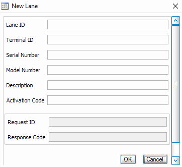- Click OK. The Request ID and Response Code will populate and the new Lane ID will be saved.