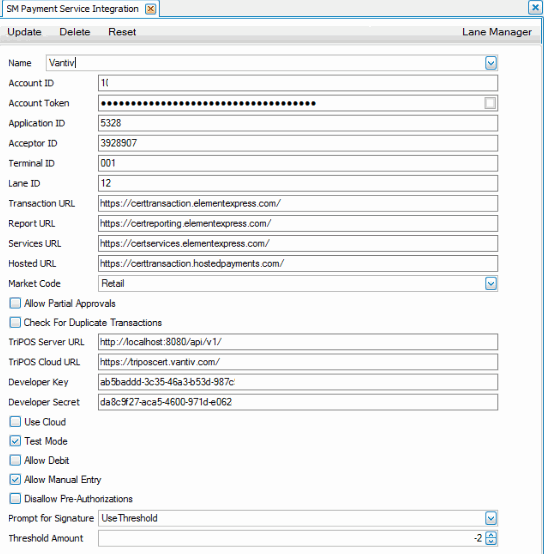 - For Vantiv/Worldpay, if you set the DeviceType to ‘EMV’, and the device has been paired to a port using the Lane Manager function, enter the Lane ID for the device.