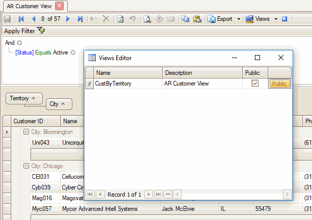 The view is private, that is, available only to you, unless you designate it as a Public view by editing the view. To edit your view, select Edit Views... in the Views menu. The View Editor will display.