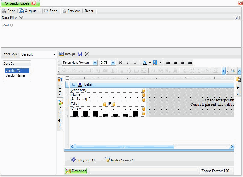 Use the Vendor Labels function to print the selected size of labels for mailings.