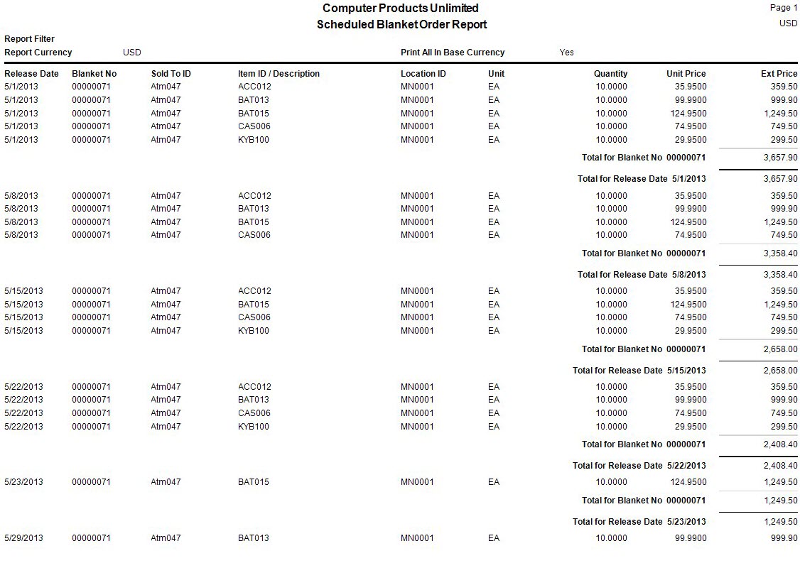 Use the Scheduled Blanket Order Report to generate a list of scheduled shipments by release date.