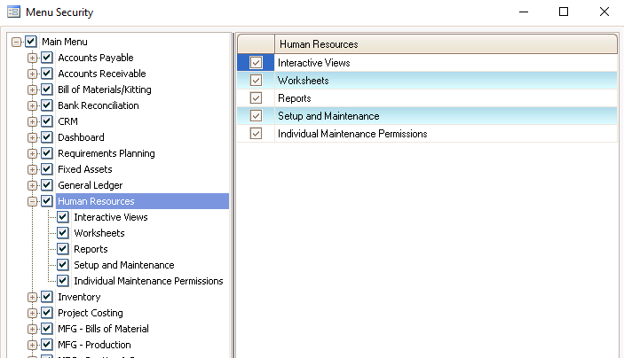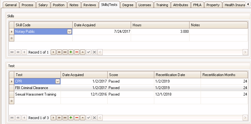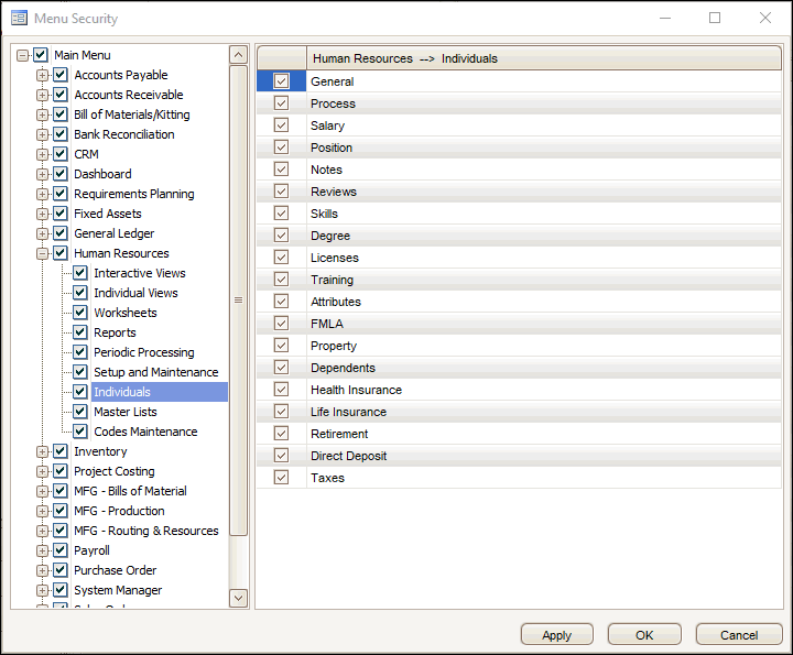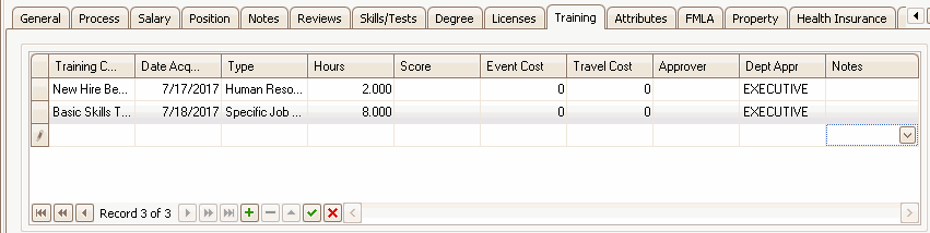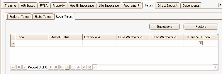 Note: In order for a user to add or delete an employee, the user must have access to all the tabs.