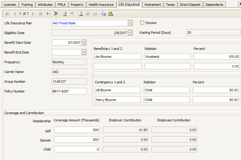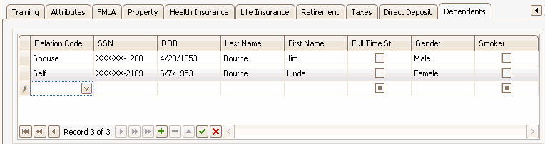 This is the primary screen for entering and maintaining data on individuals. Data entered here is then transferred to update Payroll.