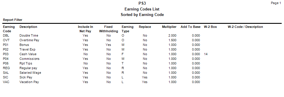 Use the Earning Codes List function to produce a list of earning codes you set up using the Codes Maintenance Earning Codes function.Recurring Entries List