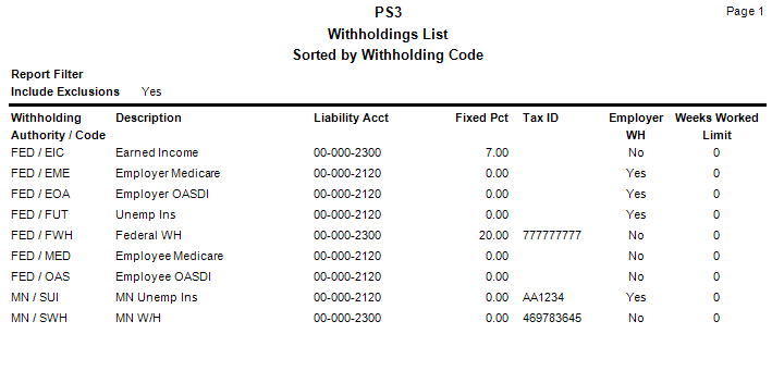 Use the Withholdings List function to produce a list of withholdings and exclusions for employees.