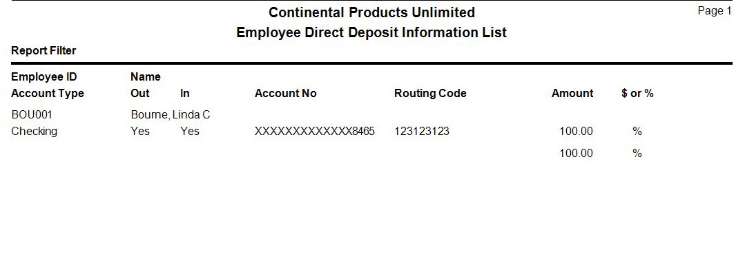 Print Print Employee Direct Deposit Information List using the selected criteria.