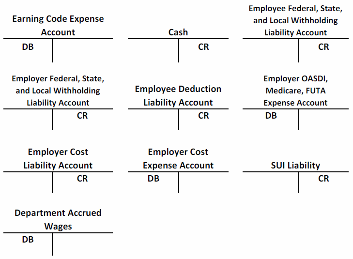 Note: If the Accounting Basis business rule is set to 'Accrual', the expenses from the daily work transaction post have already been posted. The Accrued Wages account set in each department will have a debit transaction for the expenses already posted in the transaction post.