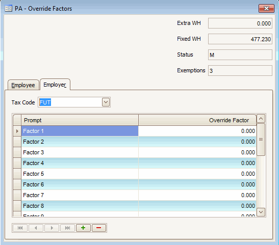 Override Factors Dialog Box—Employer Tab