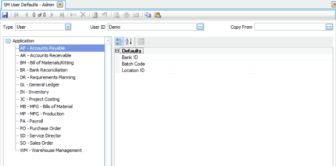 3. You have the option to copy defaults from another user via the Copy From drop-down list.